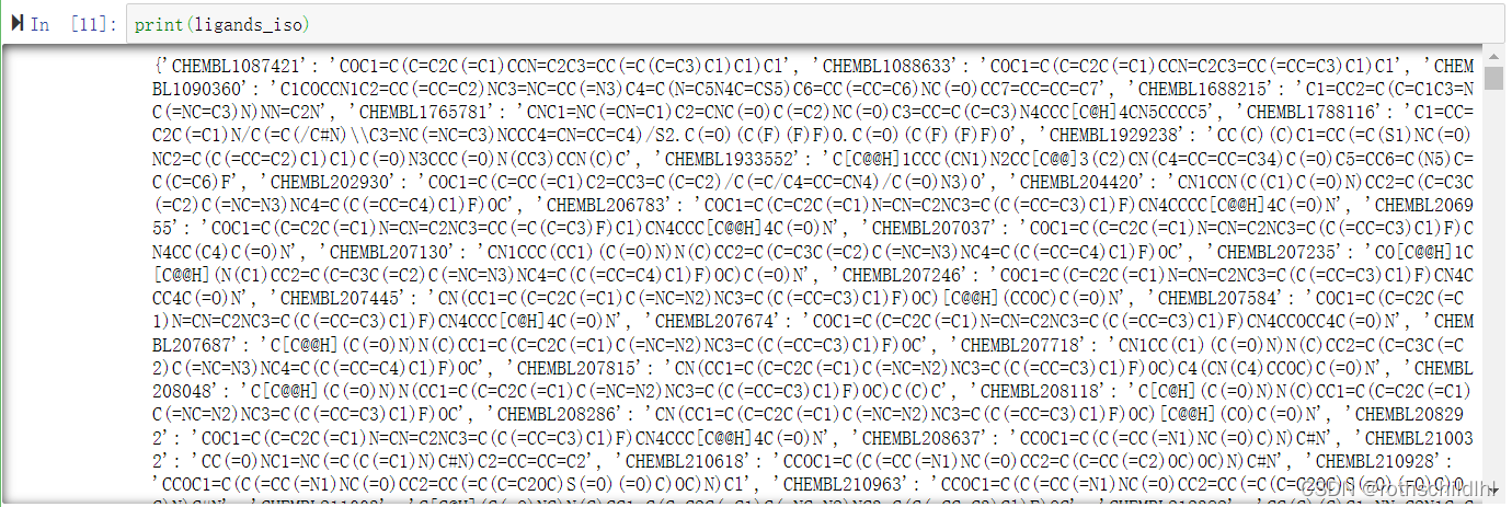 - 药物及其smiles序列数据集ligands_iso说明:药物名称序号和对应的结构smiles序列,以字典形式保存,长度是2111(表示有2111种药物)。