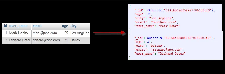 primary key | primary key | 主键,MongoDB自动将_id字段设置为主键 |