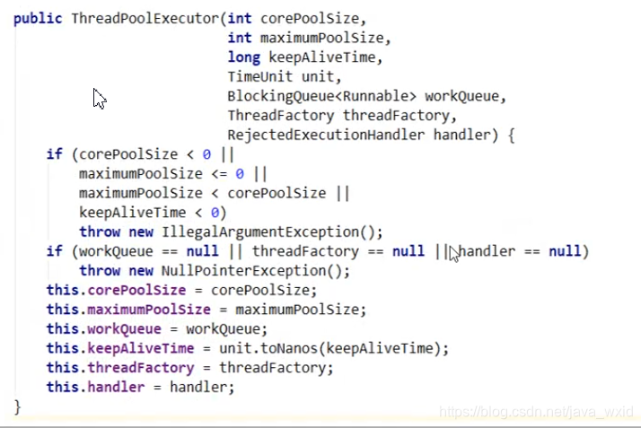我们线程池使用ThreadPoolExecutor的方式进行创建,下面看底层源码: