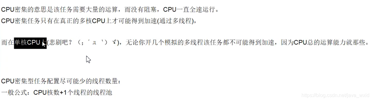 1:高并发、任务执行时间短的业务,线程池线程数可以设置为CPU核数+1,减少线程上下文的切换