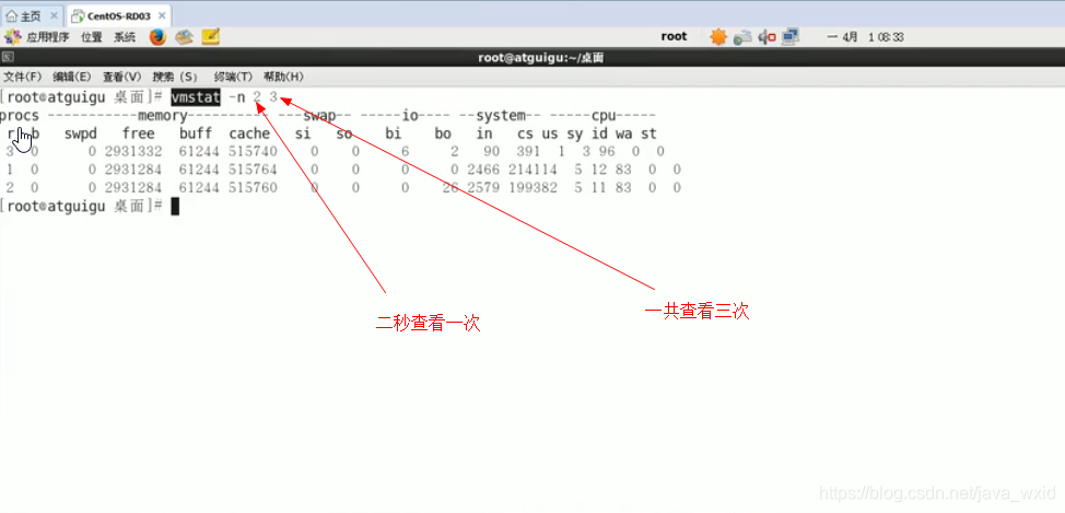 查看CPU:vmstat