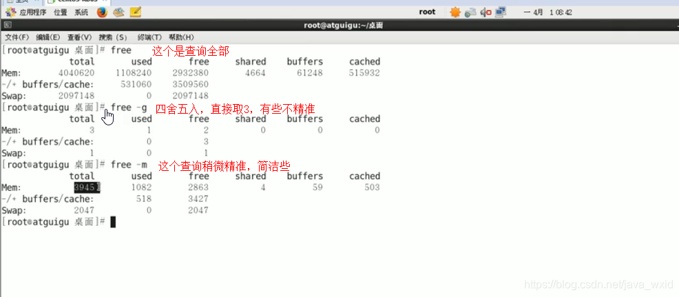 查看内存:free