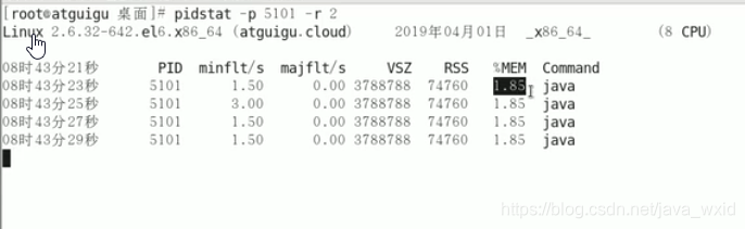 pidstat -p 进程号 -r 采样间隔秒数