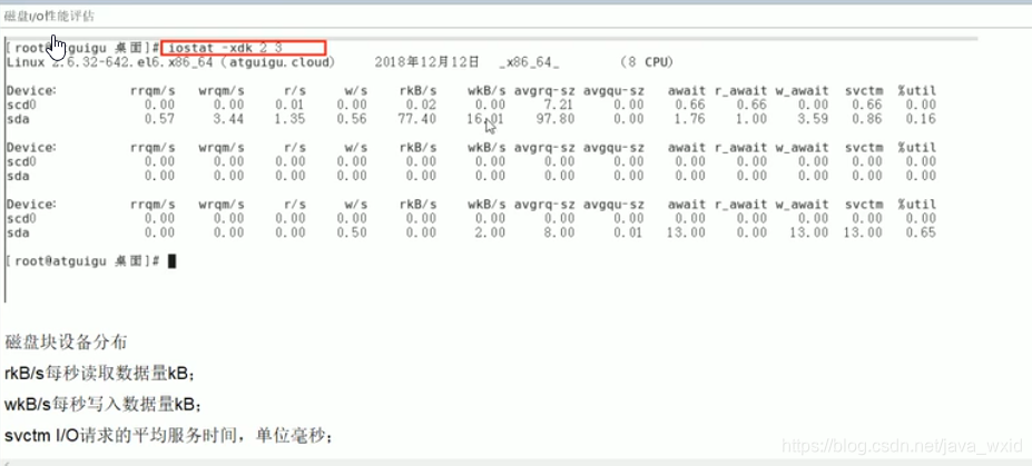 查看磁盘IO:lostat -xdk 间隔秒数 次数