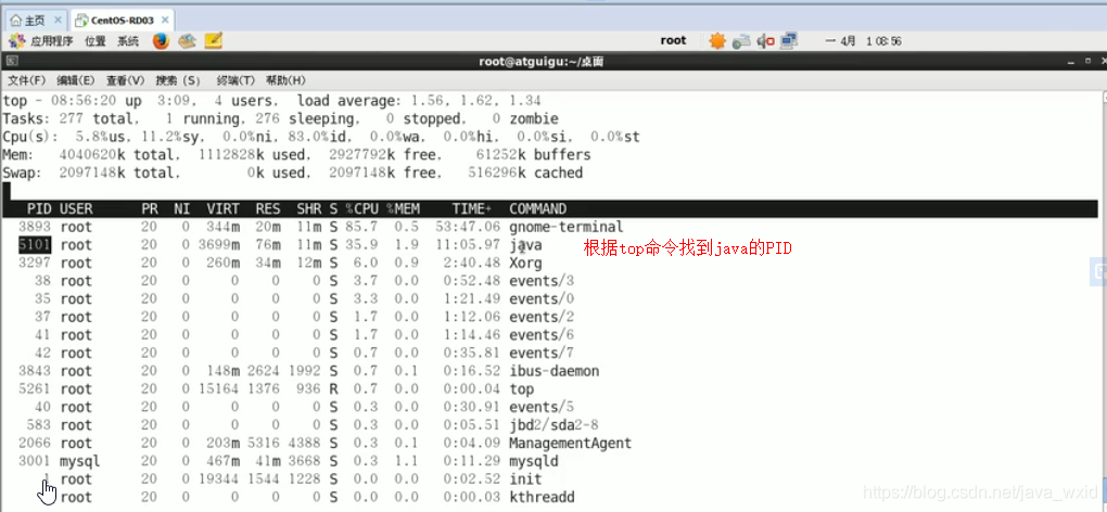 使用top命令找出cpu占比最高的
