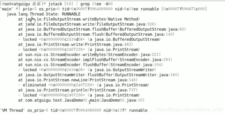 jstack 进程ID | grep tid (16进制线程id小写英文)