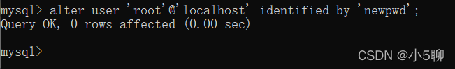修改密码:alter user 'root@'localhost' identified by 'newpwd';