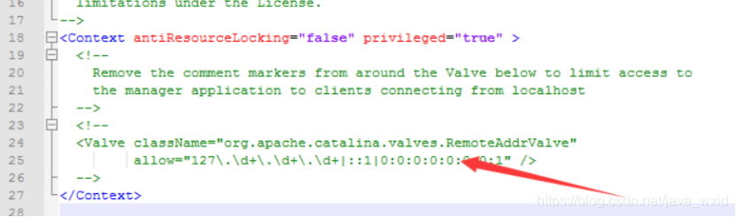 <!--<Valve className="org.apache.catalina.valves.RemoteAddrValve" allow="127\.\d+\.\d+\.\d+|::1|0:0:0:0:0:0:0:1" /> -->