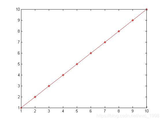 X = 1: 1: 10;% 生成自变量X Y = 1: 1: 10;% 生成因变量Y plot(X, Y);% 绘制图形