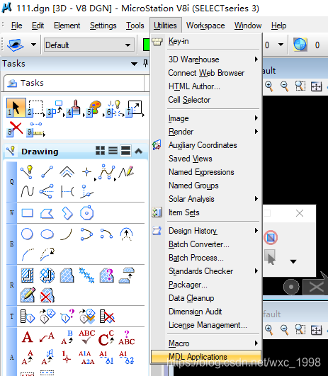 - 打开MicroStation V8i软件,在上方工具栏选择Utilities -->MDL Applications