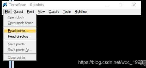 - 在TerraScan模块中读取待处理的点云数据 File -->Read points,这里我们选取的是山区点云数据,原始数据中未进行分类。