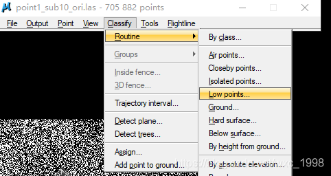 - Classify --> Routine -->Air points以及Classify --> Routine -->low points进行去除噪声点(飞点/低点)。