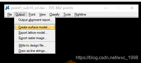 - Output --> Create surface model 创建一个tin模型,注意要仅选择地面点。