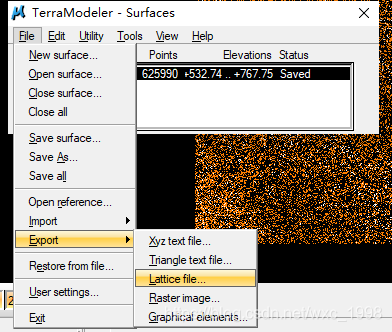 - 选择我们刚才生成的Surfacse 名称为tin1,然后在当前操作窗口中选择FIle–> Expor --> Lattice file
