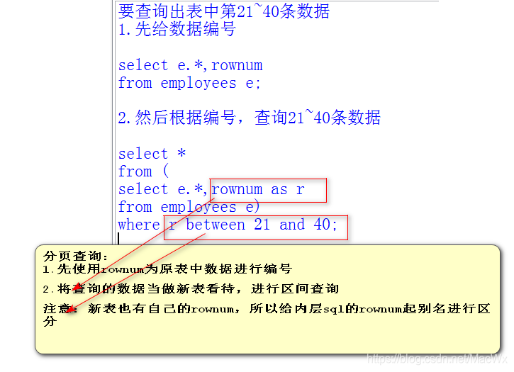 - rownum 尝试给每一行满足条件的数据,进行编号,