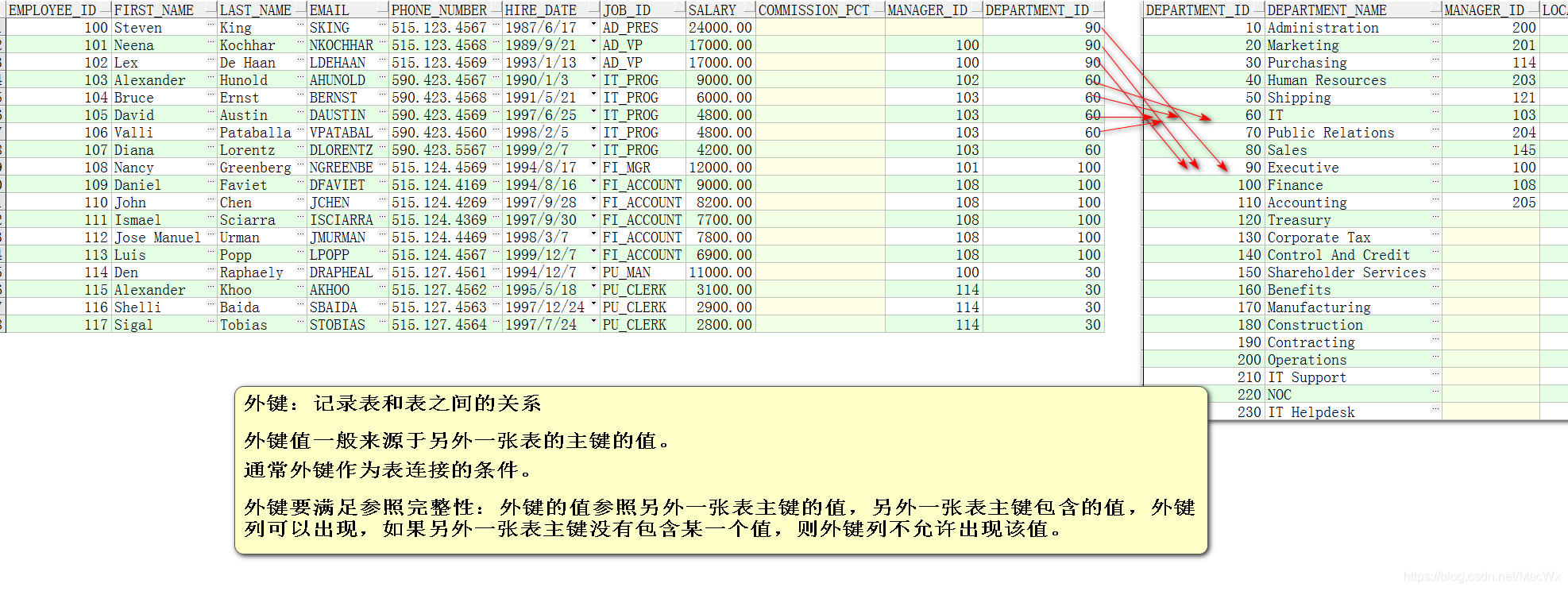 还用昨天的两个表,employee员工表和department部门表来做测试: