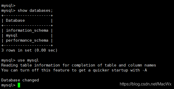 5.1 查看当前mysql默认的数据库,并且操作名字叫做mysql的数据库