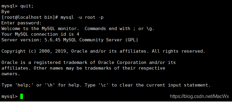 设置成功使用quit退出mysql客户端