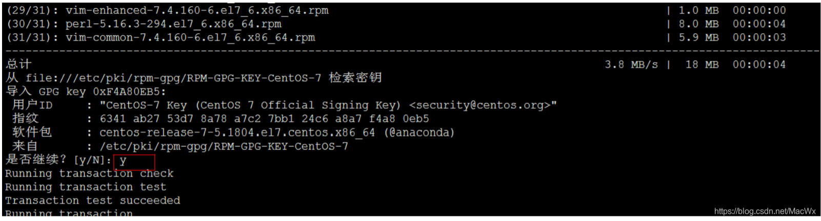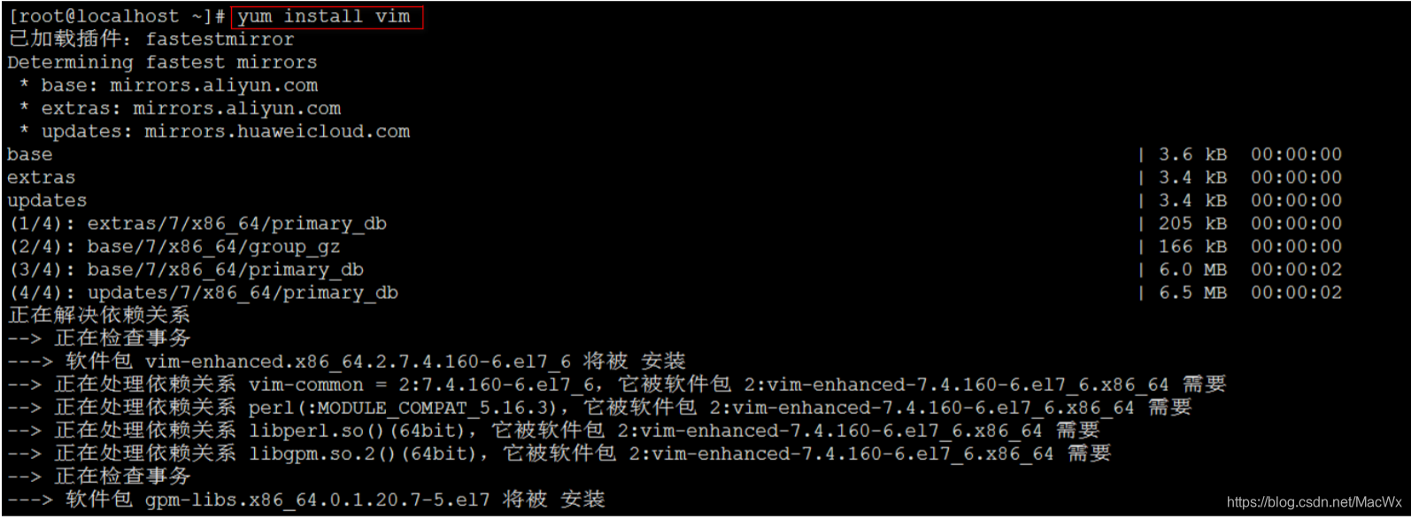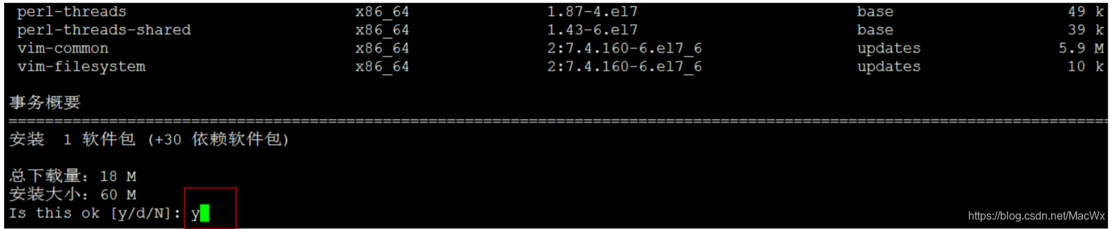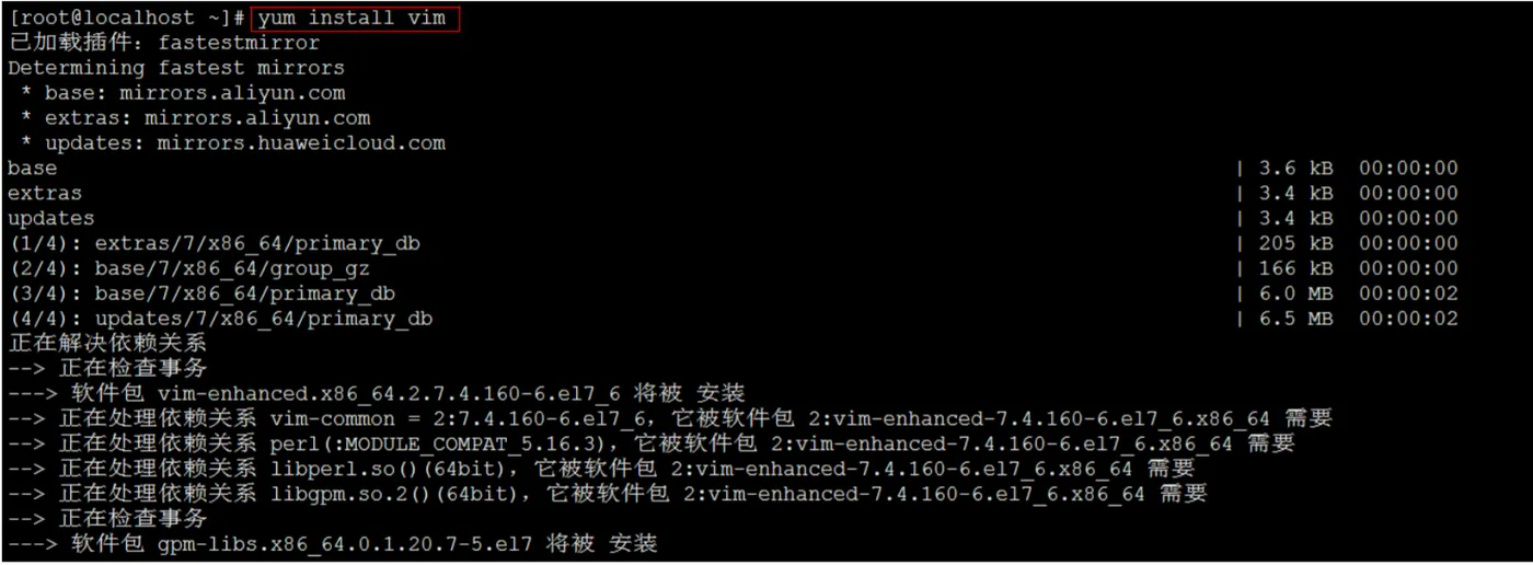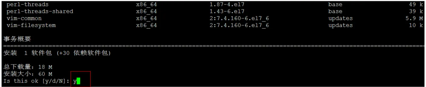 下边以Vim的安装为例,演示Yum的使用