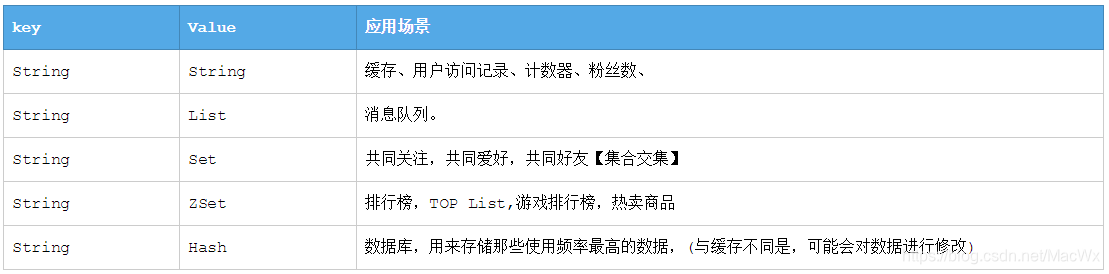key是string类型 value的数据结构支持5个string、set、sorted_set、list、hash
