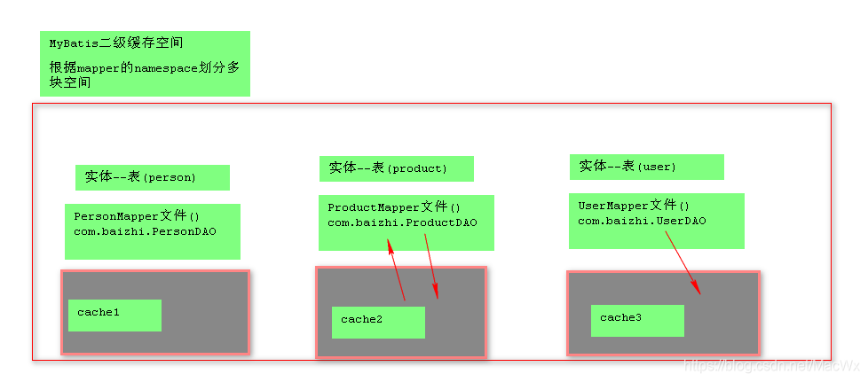 Mybatis根据Mapper文件的namespace划分多个缓存空间.