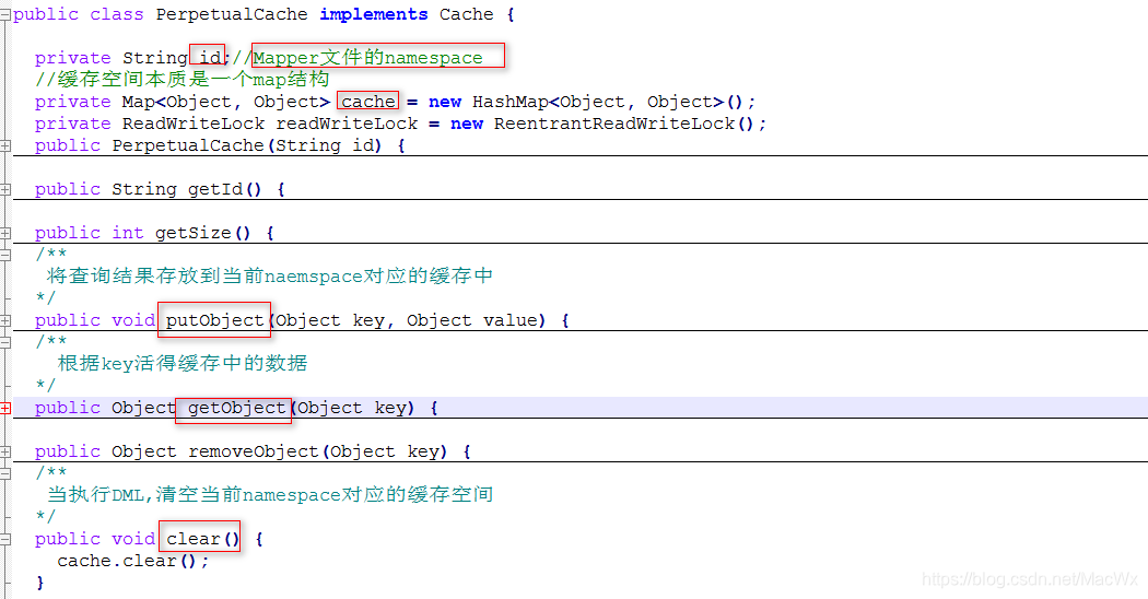 MyBatis管理每个缓存,使用Map管理 key:id(namespace) value:PerpetualCache