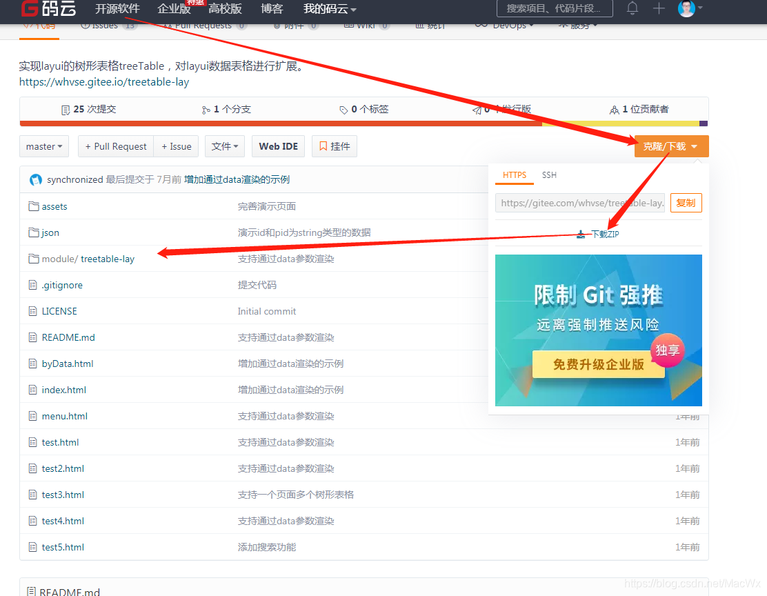 打开项目地址,将整个项目下载下来,项目中其他文件可以参考,我们主要用的就是treetable-lay这个文件夹的内容。