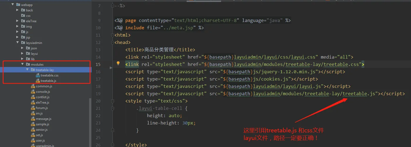 下载好项目后把treetable-lay放在我们自己项目的任意位置,但是尽量和layui文件夹放一块,好找!
