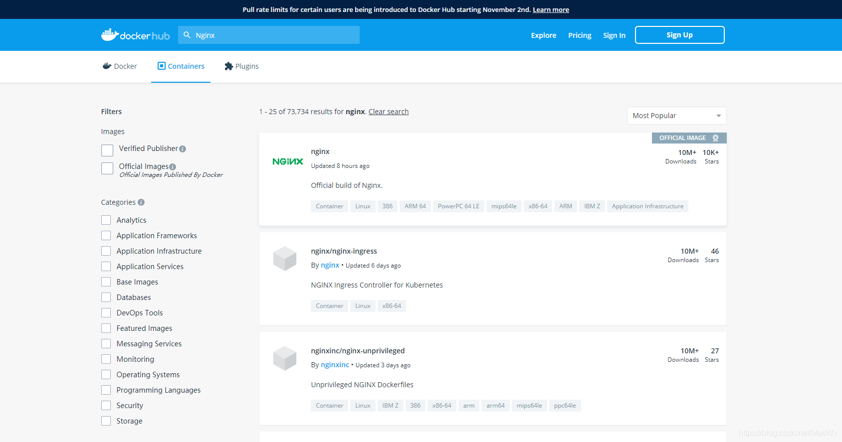 拉取的镜像相信版本信息去上面所说的docker hub上面找。