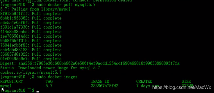 注意:如果不加 :5.7 ,会默认下载最新版本的,加冒号