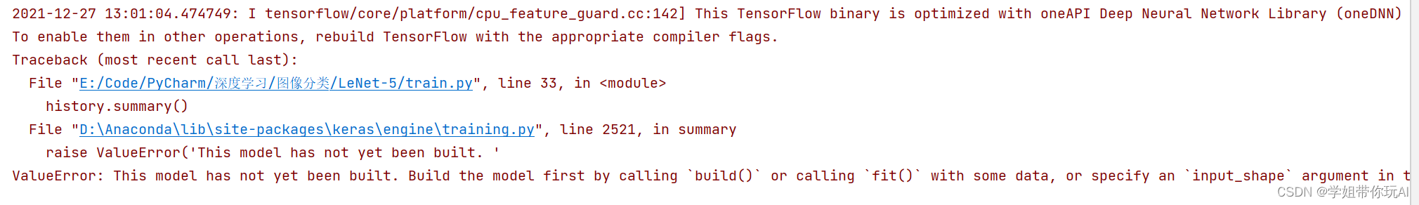ValueError: This model has not yet been built. Build the model first by calling `build()` or calling `fit()` with some data, or specify an `input_shape` argument in the first layer(s) for automatic build.