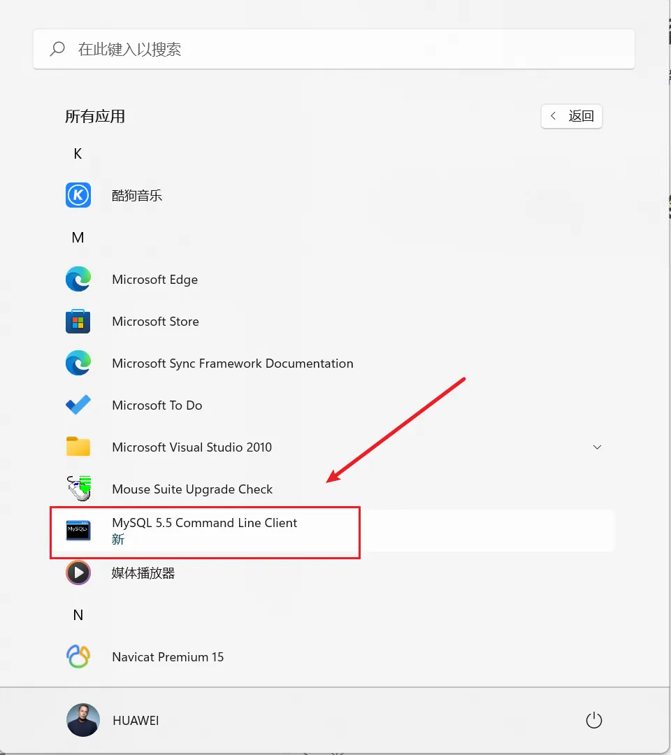 第一种方式是使用MySQL自带的客户端系统,通过它可直接连接,如果在安装MySQL的过程中没有安装客户端则不能使用该方法