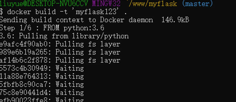 可以看到,我们项目的镜像首先基于python3.6这个基础镜像,然后声明项目目录在/Project/myflask中,拷贝依赖表,之后安装相应的依赖,这里在安装过程中我们指定了国内的源用来提高打包速度,最后利用gunicorn运行项目,值得一提的是,ENV LANG C.UTF-8是为了声明Docker内部环境中的编码,防止中文乱码问题。