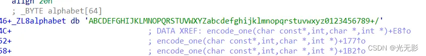 move_bit字面意思和使用这个函数的次数很像是base64,看一下加密算法中很显眼的这个alphabet数组