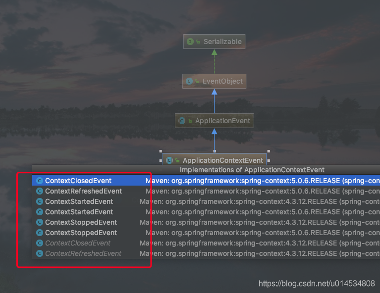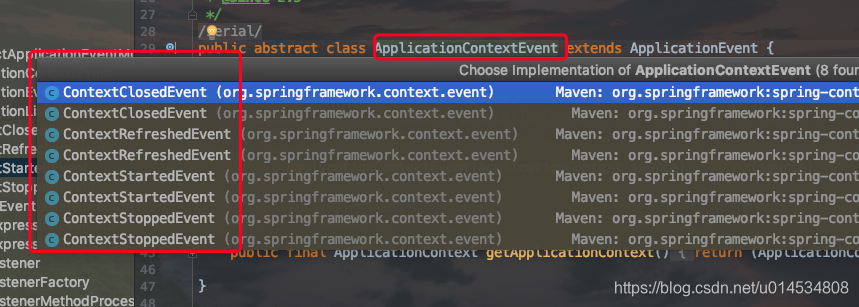 5.如果我们要ApplicationContextEvent 的子类,就需要用到上面快捷键。
