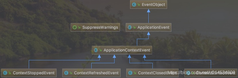 ApplicationContextEvent 继承自ApplicationEvent,而ApplicationEvent 继承自EventObject,Spring提供了一些默认的实现,比如: