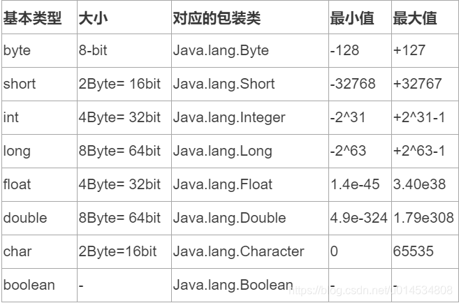 从事Java开发的小伙伴都知道Java有八种基本数据类型,分别是byte, boolean,char,short,int,float,long,double。其中各个数据类型所占的字节数如下图所示: