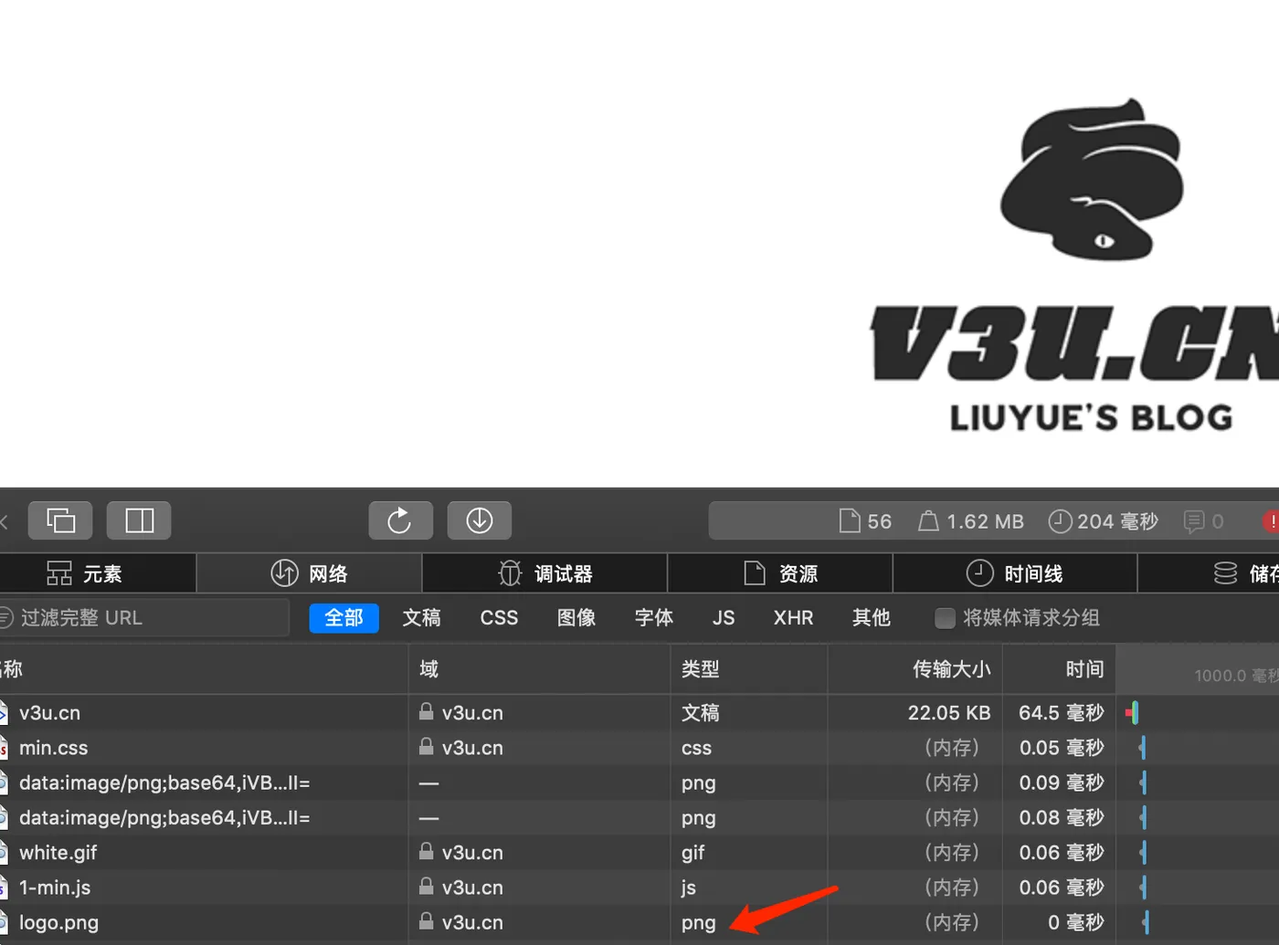 现在让我们来测试一下,以本站的logo图片为例子,如果是不支持webp格式的浏览器,比如低版本的Safari(13.0.3):