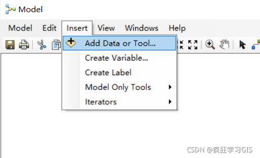 在“Model”界面上方,选择“Insert”→“Add Data or Tool...”。