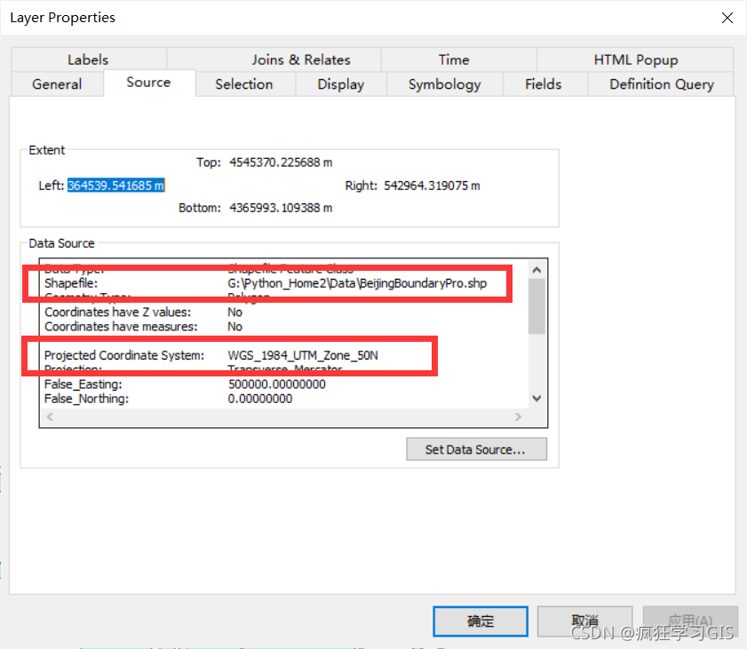 查看输出结果数据的属性,可以看到其名称、投影坐标系都与我们所设定的一致。