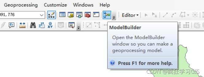 首先,在ArcMap软件中打开“ModelBuilder”。