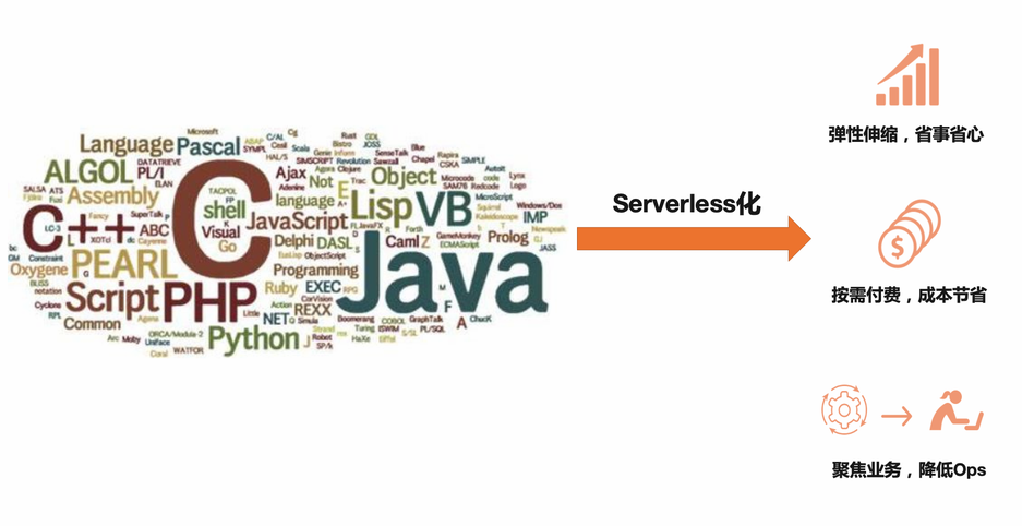 监控能力作为基础运维能力和核心稳定性措施,开发运维人员可以通过监控系统有效进行故障定位,预防潜在风险,分析长期趋势进行容量规划和性能调优,是软件开发生命周期中必不可少的一环。与此同时,Serverless 作为云计算的最佳实践和未来演进趋势,其全托管免运维的使用体验和按量付费的成本优势,使得其在云原生时代备受推崇,在下一个十年将成为云厂商提供的核心能力。随着 Serverless 的心智普及度越来越高,场景覆盖度越来越广,更多使用 PHP, Python,C/C++, Node.Js, Golang 等语言的用户开始进行 Serverless 架构升级。