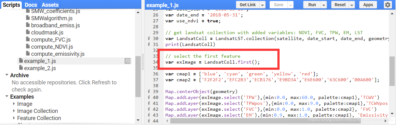 我们举个例子,来展示一下具体的情况——例如,假如我们现在需要将下图红色圈内的GEE代码复制并粘贴到另一网站: