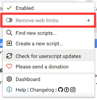 随后多次尝试发现,是油猴中具有解除网页复制限制功能的Remove web limits脚本导致的问题;若将这一脚本关闭,则网页端的文字复制粘贴就恢复了正常。关闭后如下图:
