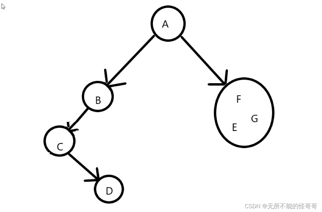 至此,整棵二叉树的左子树分析完毕,再用第二、三步同样的方法分析右子树{F,E,G}。