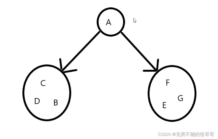 这样就把问题分解为{C, D, B}和{F, E, G}两个子问题,首先分析左子树