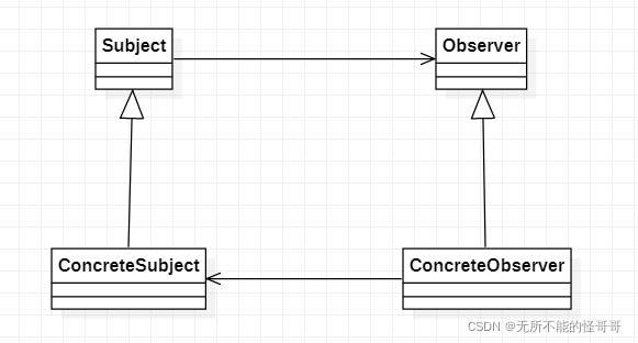 - ConcreteSubject:具体主题,被观察者的具体实现,当状态发生改变时,向所有观察者发出通知;