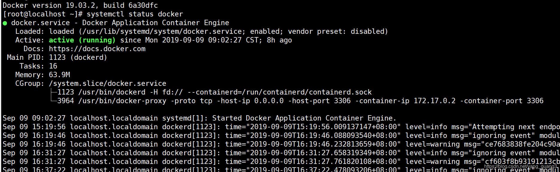 启动docker:systemctl start docker