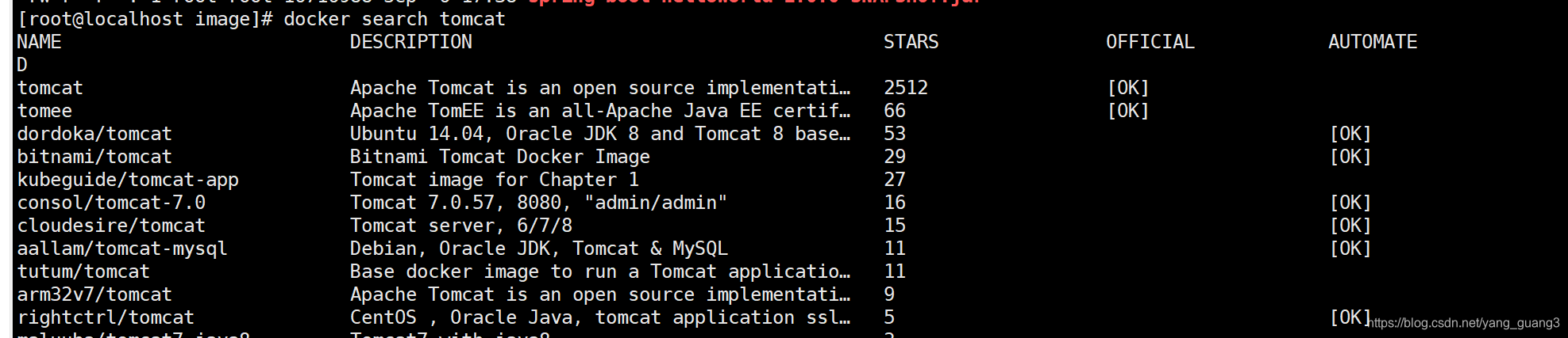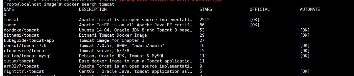 3.2、搜索镜像:docker search tomcat