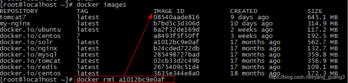 image id:镜像id,删除镜像时候会用到;